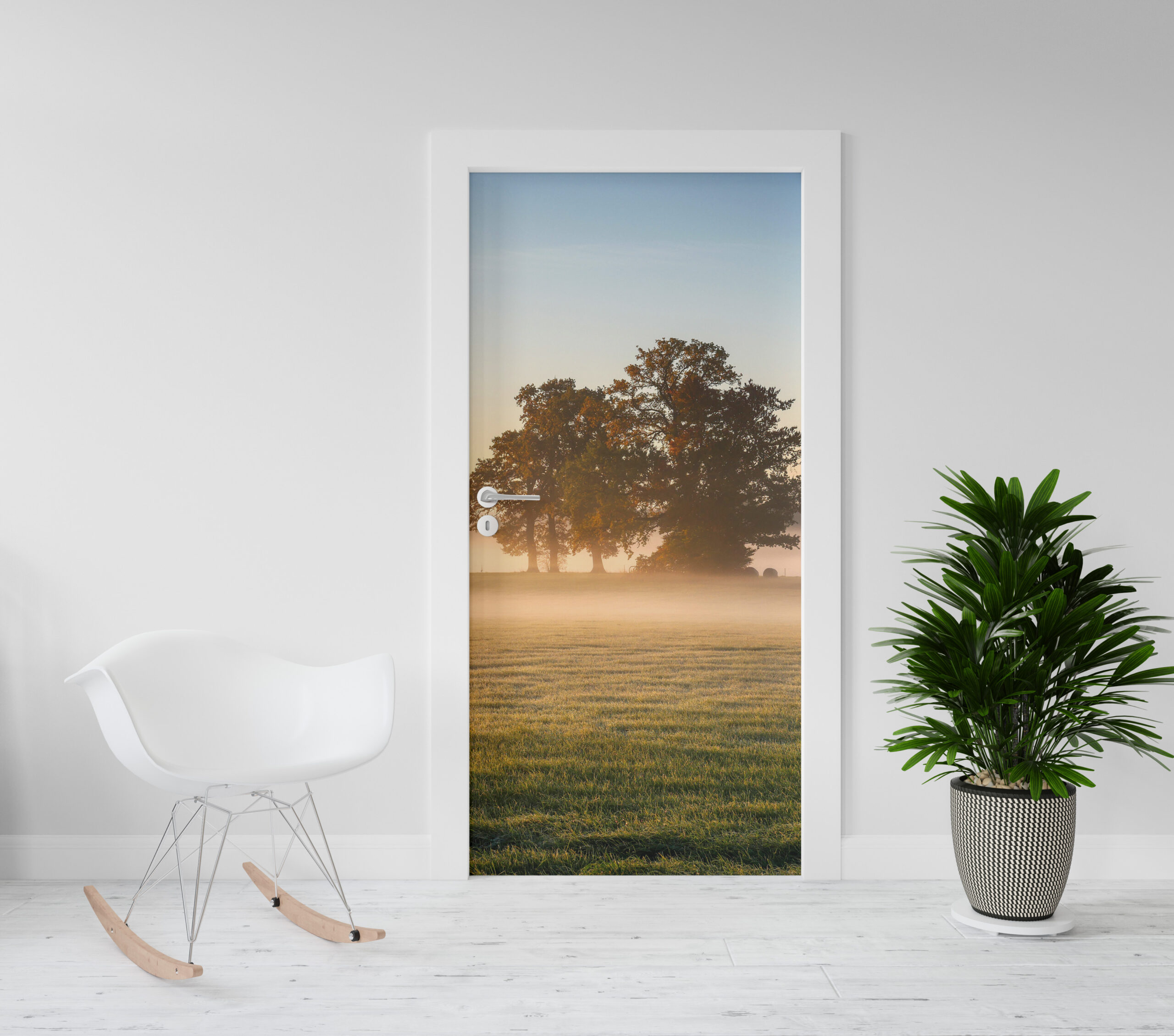 Deursticker Bomen in de mist 1